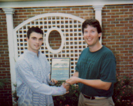 Michael Harrington-Howes, the scholarship's third recipient received this award for undertaking the responsibility of planning, coordinating, and executing each phase of a service project of his own design. Mike's idea was called Hiking For a Cure. He collected sponsorships for hiking the Appalachian Trail and raised $6,805 for the Christopher Reeve Paralysis Association.